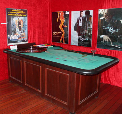 ska anordna en fest med James Bond tema. Roulette-bord, neonskyltar,