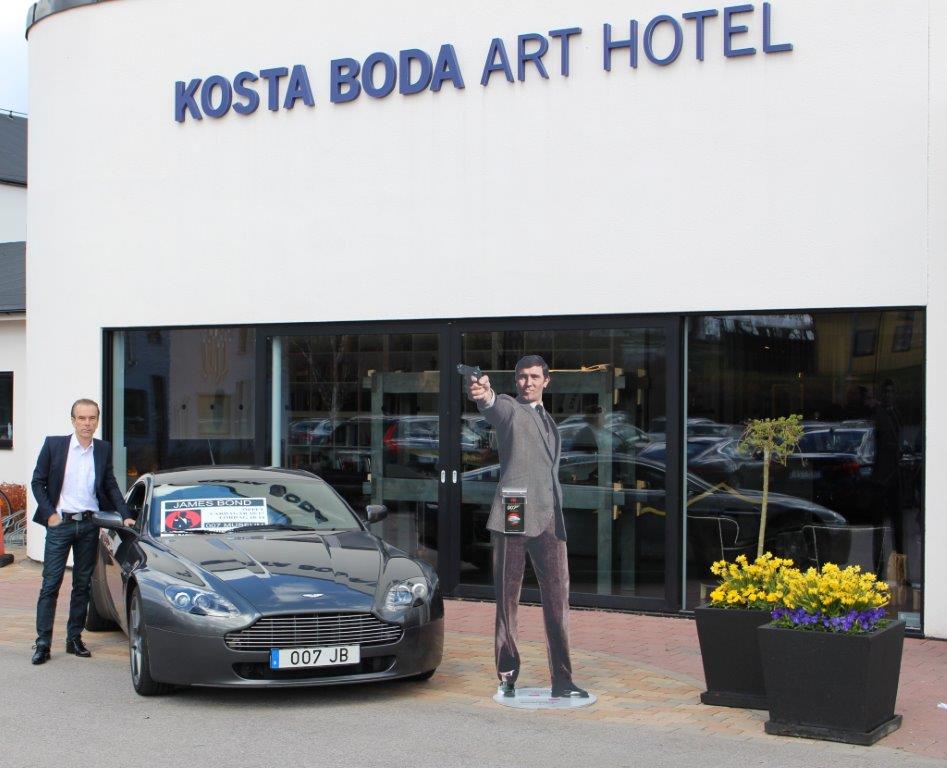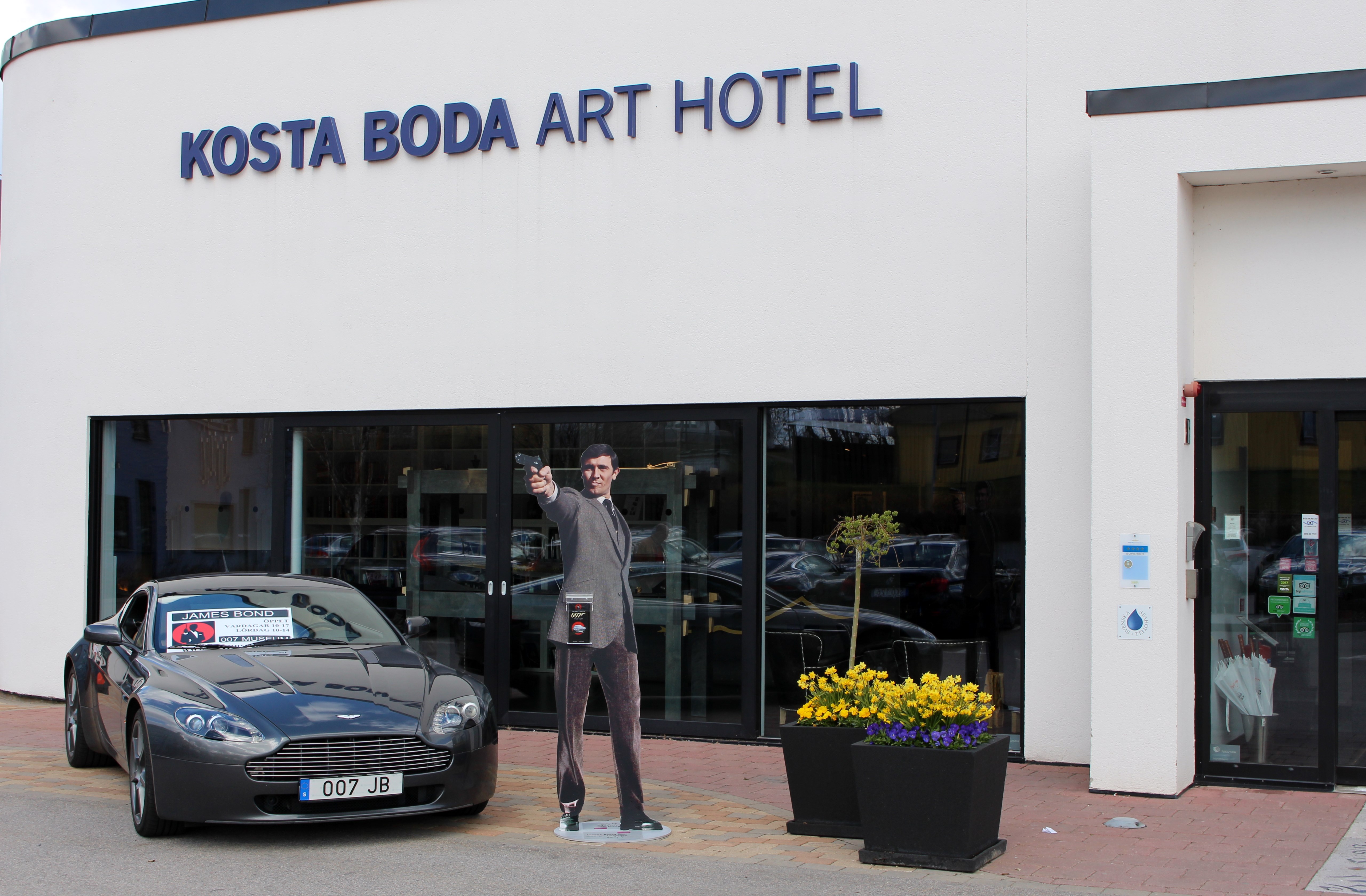 Hotel with Aston Martin 007 JB plate from James Bond 007 Museum Nybro Sweden