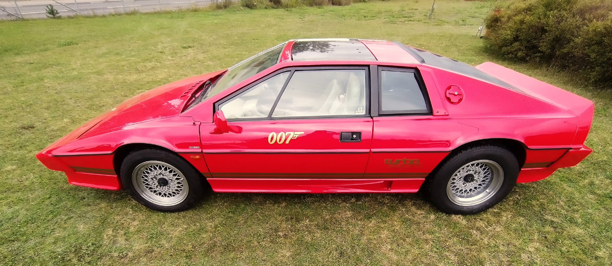 At the beginning of the film, a white Lotus Turbo Esprit was used, while Roger Moore investigated Gonzale's House. 2 bad guys attempted to break into the car, however, the security system activated and blew up the car! Not very clever security device if you ask me. The second car was a copper coloured Turbo Esprit, shown here, featuring a ski rack on the rear louvers. There were two identical copper cars used in the filming. The second being purchased directly from Lotus Cars in 1998. The car below was actually Lotus's 1980 Turbo Esprit prototype and was originally white, but the car was painted copper, so it would show up against the snowy backgrounds in the film. Both cars helped give the Esprit Turbo some much need promotion and increased the profile of the car to the general public. After the popularity of the white Lotus Esprit S1, in the 1977 James Bond Film, The Spy Who Loved Me, the new Turbo Esprit was featured in the 1981 film, For Your Eyes Only. Where as the Esprit in the Spy Who Loved me was "an all sing, all dance" submarine, the Turbo Esprit's took on less ambitious roles in the film. FordonsinformationHögerstyrd, Soltak i glas, Matching numbers, Certifikat ifrån Lotus-fabriken finns, Kvitton och servicestämplar finns, Bilen har gått ca 400 mil sedan renovering, Totalrenoverad Turbo 2018, Nya däck runt om, Nybesiktigad utan anmärkning, Mr Cap-behandlad, TIllverkad i England, Bilen har genomgått ett flertal reparationer och förbättringar (gjorda utav proffs), Endast 6 st bilar tillverkade i Calypso red med Champagne inredning 1984