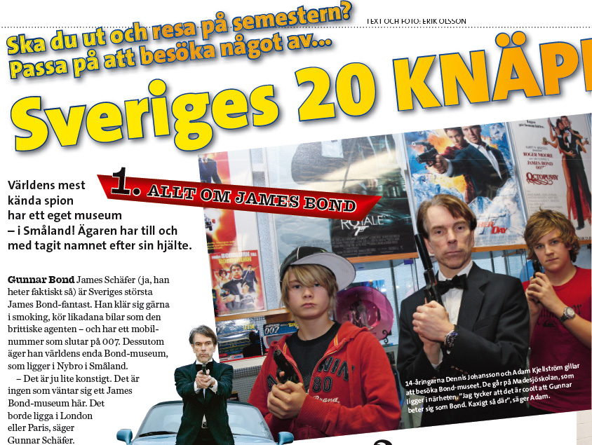 besökte James Bond 007 Museum Nybro Sverige![]() 1. ALLT OM JAMES BOND Ska du ut och resa på semestern? Passa på att besöka ...Sveriges James Bond 14--åringarna