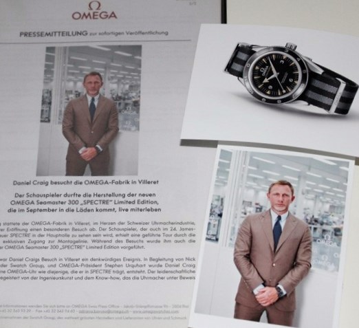 August 17, 2015 The New James Bond Watch: Omega Seamaster 300 "SPECTRE“ Limited Edition. Official Omega Switzerland Three-Sheet Press Information Folder Includes Two Photos