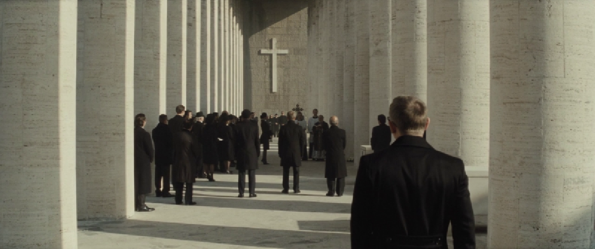 Roman Civilization SPECTRE James Bond Daniel Craig in Rom Italy Visit by James Bond 007 Museum Nybro Sweden and the President/CEO James Bond Gunnar Schäfer http://www.007museum.com/ MUSEO DELLA CIVILTÀ ROMANA Museo della civiltà romana, Piazza Giovanni Agnelli, Rome, Sciarra's funeral scene is taking place at Museo della Civiltà Romana (in english: Museum of Roman Civilization). In this scene we see Sciarra;s wife, played by Monica Belucci. Museum of Roman Civilization is one of the most famous museums in Rome.