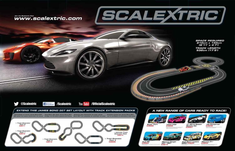SPECTRE, the latest James Bond film, is due for release on 26th Octoberr 2015 and now you can recreate your own 007 car chases with the Scalextric James Bond SPECTRE Set. The set includes the sleek Aston Martin DB10 and Jaguar C-X75, as featured in the film, with a high performance figure-of-eight track - leap ramps, side swipes, a 90 degree crossover and a bordered 180 degree curve will result in some epic chases! Set contains: