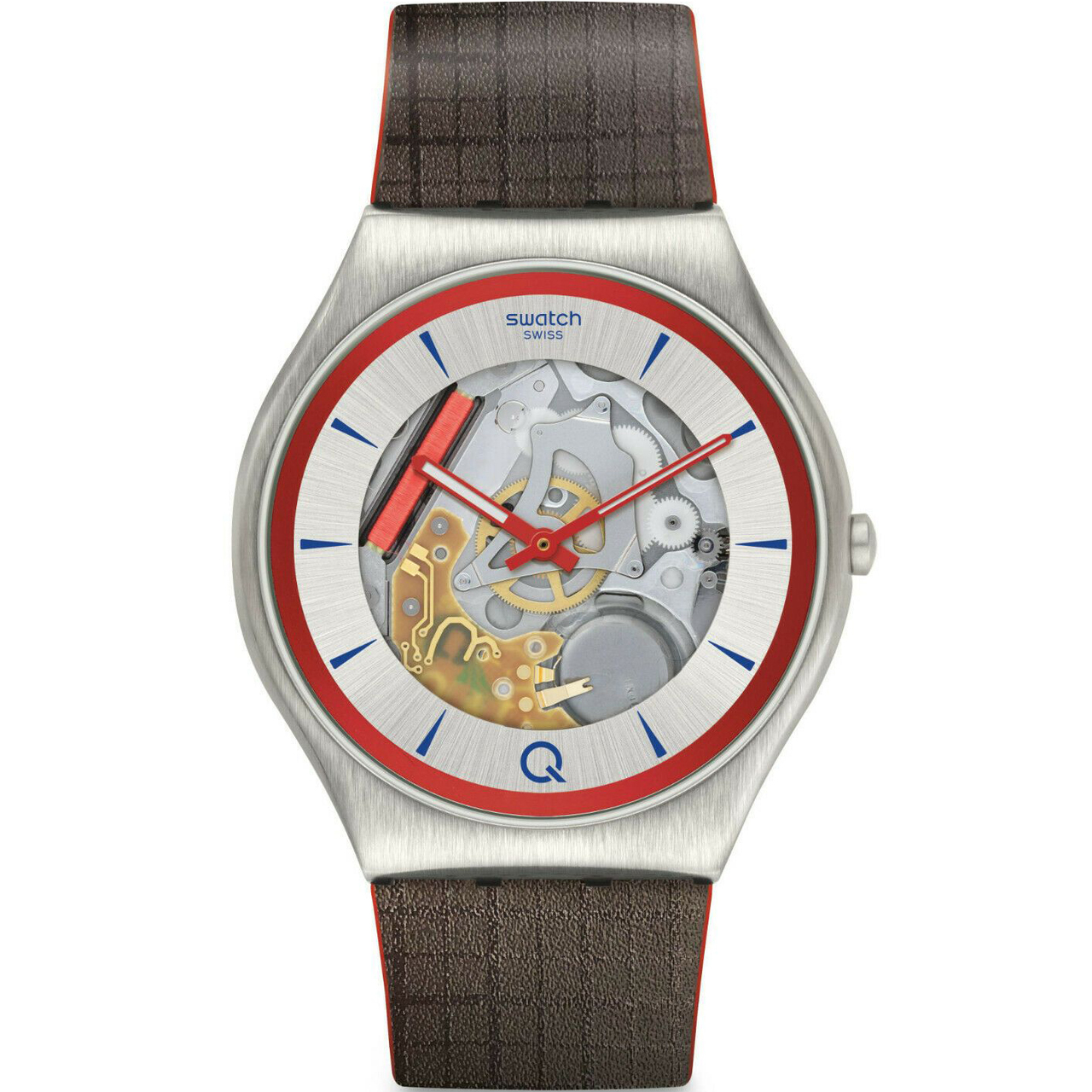 see-through plastic dial revealing the movement beneath it. Printed