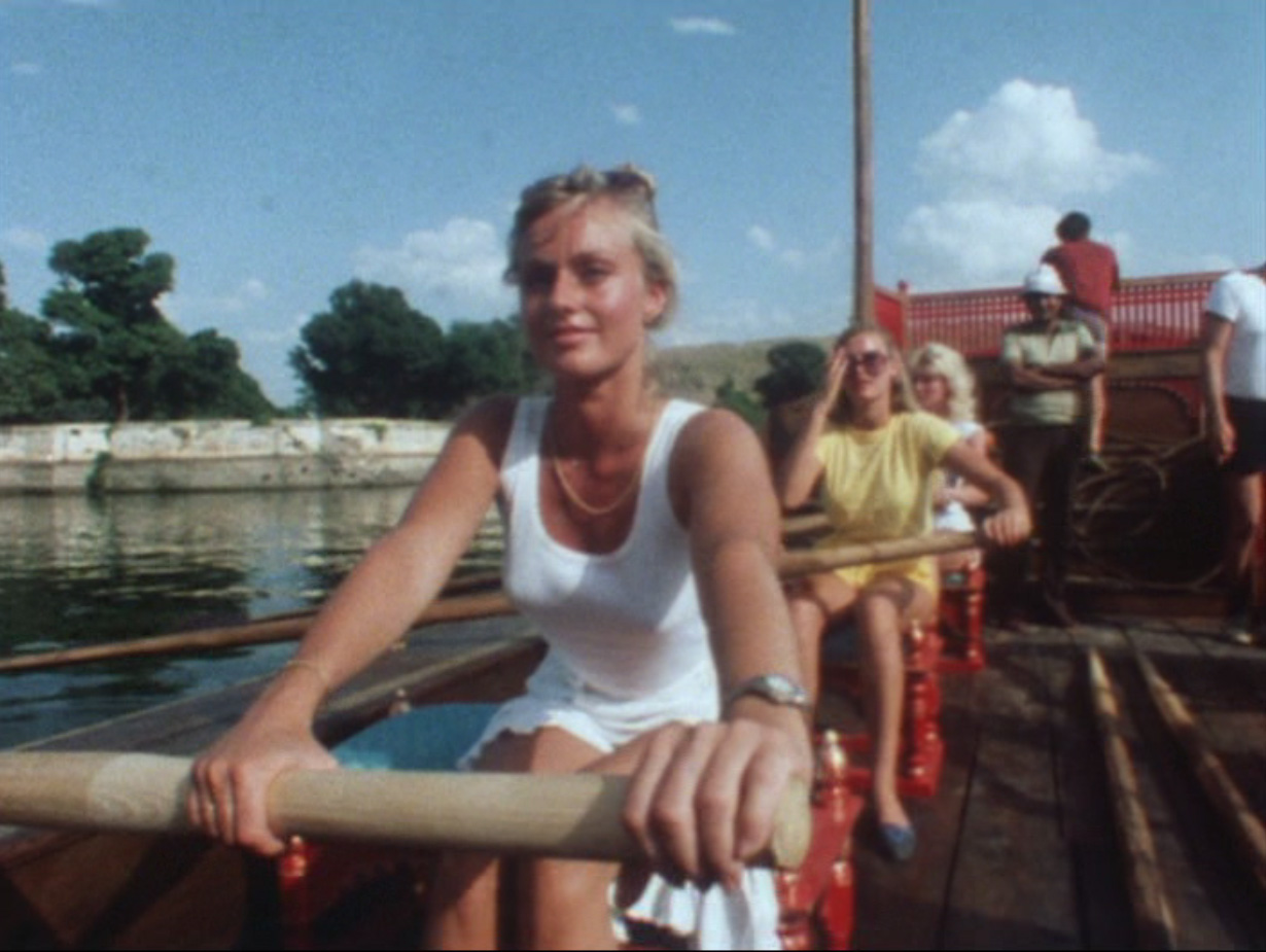 Mary Stavin on the set Octopussy Gangaur boat Lake Palace Udaipur India.