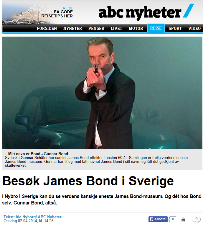 http://www.abcnyheter.no/reise/2014/04/02/besok-james-bond-i-sverige http://www.aftenbladet.no/tv/Mitt-navn-er-Bond_-Gunnar-Bond-3389812.html#.UzxBmfGKDaE |