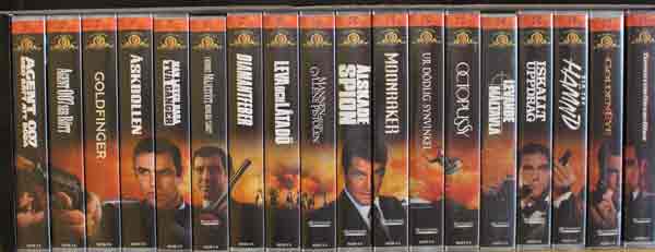 BOX 18 FILMER Alla Bond fans har väntat sedan den första Bond filmen släpptes på VHS här Sverige på en samlarbox och nu är äntligen väntan slut innehåller 18 Bond-VHS filmer! Boxen kommer att bli i en mycket begränsad upplaga. Den perfekta presenten till den sanne Bond-fantasten! VHS Widescreen Edition Details: Dr.